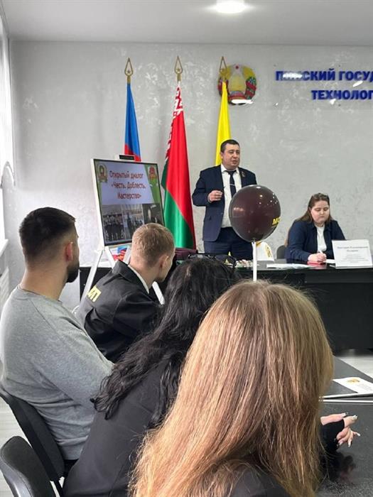 ✨С приветственным словом выступил депутат Пинского городского Совета депутатов, директор колледжа Николай Вакульчик, который рассказал о роли молодежи в укреплении правопорядка и формировании патриотических ценностей.