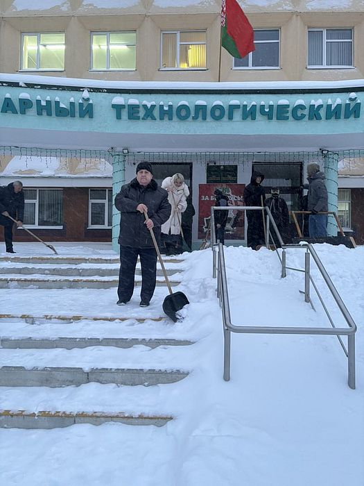 Сегодня, несмотря на мороз и обильный снегопад, коллектив Пинского государственного аграрного технологического колледжа показал свою сплочённость и трудолюбие!