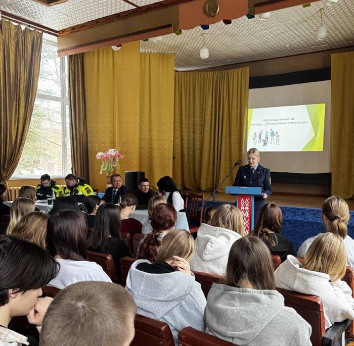 Сегодня, 26.02.2026 года для учащихся колледжа прошел открытый информационный час на тему "Деструктивные субкультуры", с участием ОУР Пинского ГОВД Романа Овсянникова, ст.помощника прокурора Марины Иванчик, инспекторов ОГАИ Пинского РОВД Максима Шилова и Дениса Ельца.