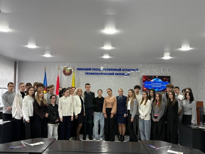 Спикерами встречи выступили заместитель Пинского межрайонного прокурора Ольга Чимбур, участковый инспектор ИДН Пинского ГОВД Алексей Козак, главный специалист ГК ОО «БРСМ» Вероника Волуевич и Зам.директора по ВР Инна Мацкевич.