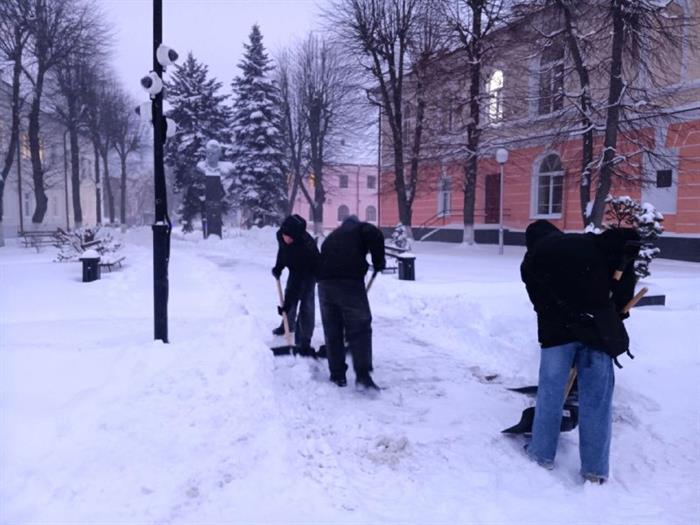 Учащиеся механического отделения, активисты ПО ОО "БРСМ" Пинского государственного аграрного технологического колледжа вышли на помощь коммунальным службам города Пинска!; Вооружась лопатами, вместе они очистили от снега улицы города: ул. Заслонова, ул. Днепровской флотилии, ул. Ленина, площадь Кирова и ближлежащие территории