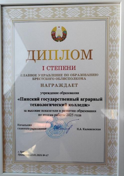 Почетной награды удостоено учреждение образования за достижение высоких показателей в развитии образования!;